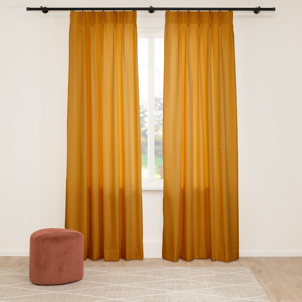 -Dit type gordijn heeft twee plooien per plooi, waardoor het een dichtere en vollere uitstraling krijgt wanneer het is gesloten.