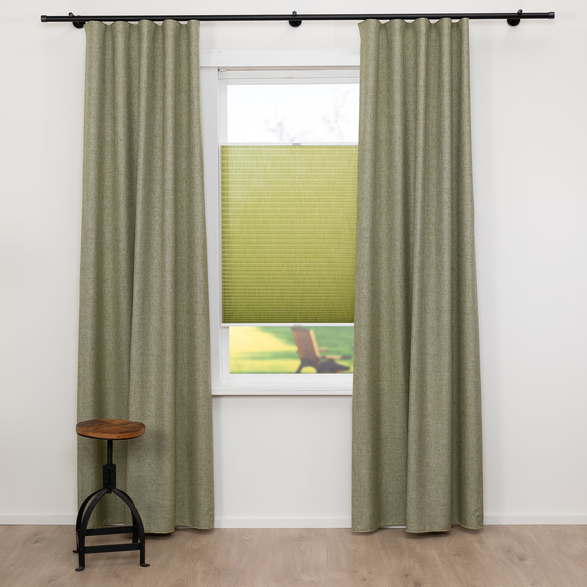 Plisségordijn Pera - Limoen Groen - Greep - Top down bottom op