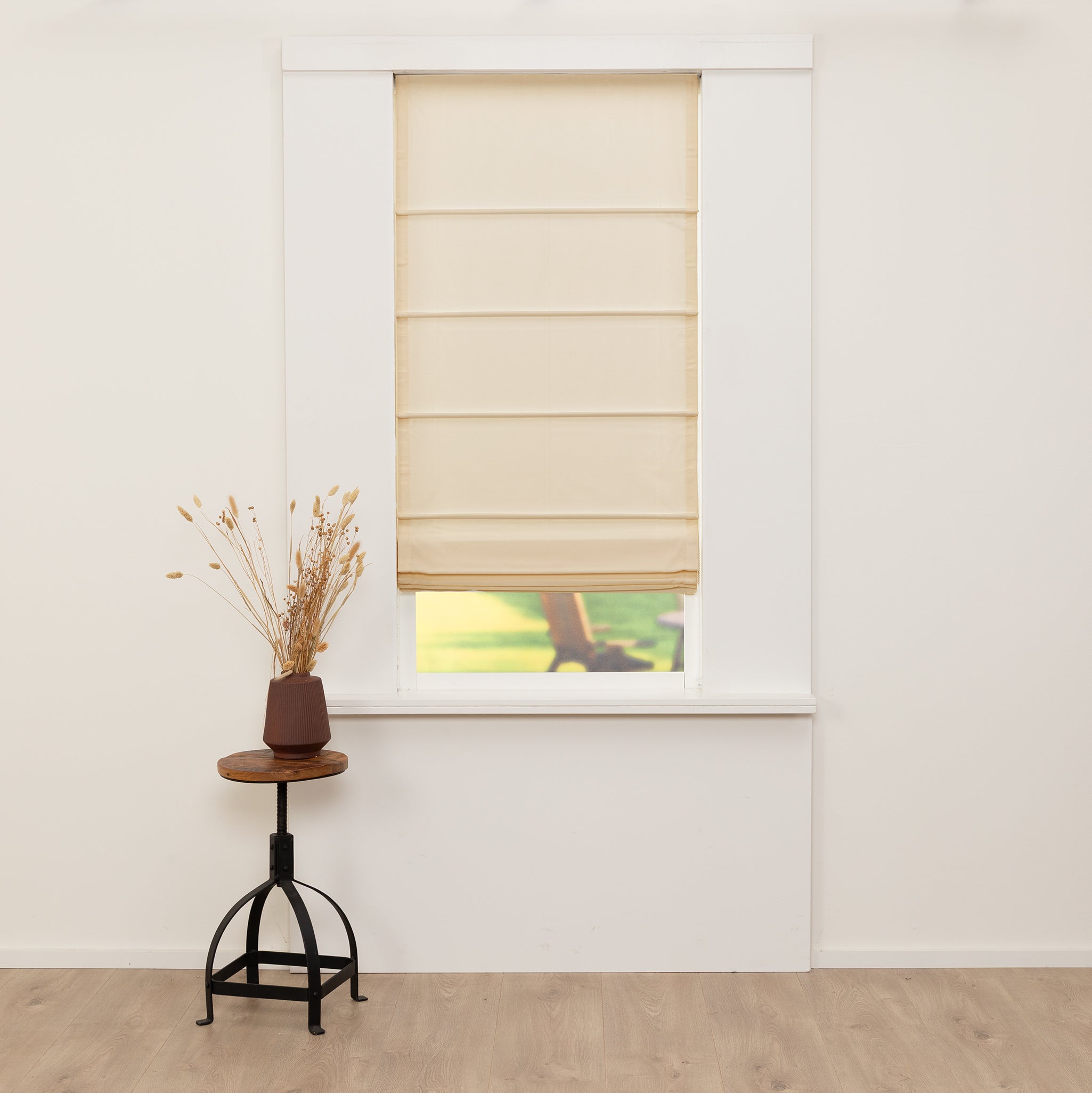 Kleurafwijkingen tussen de zijstroken en het midden van het vouwgordijn zijn mogelijk als gevolg van de vleug van de stof en de machinale afwerking.