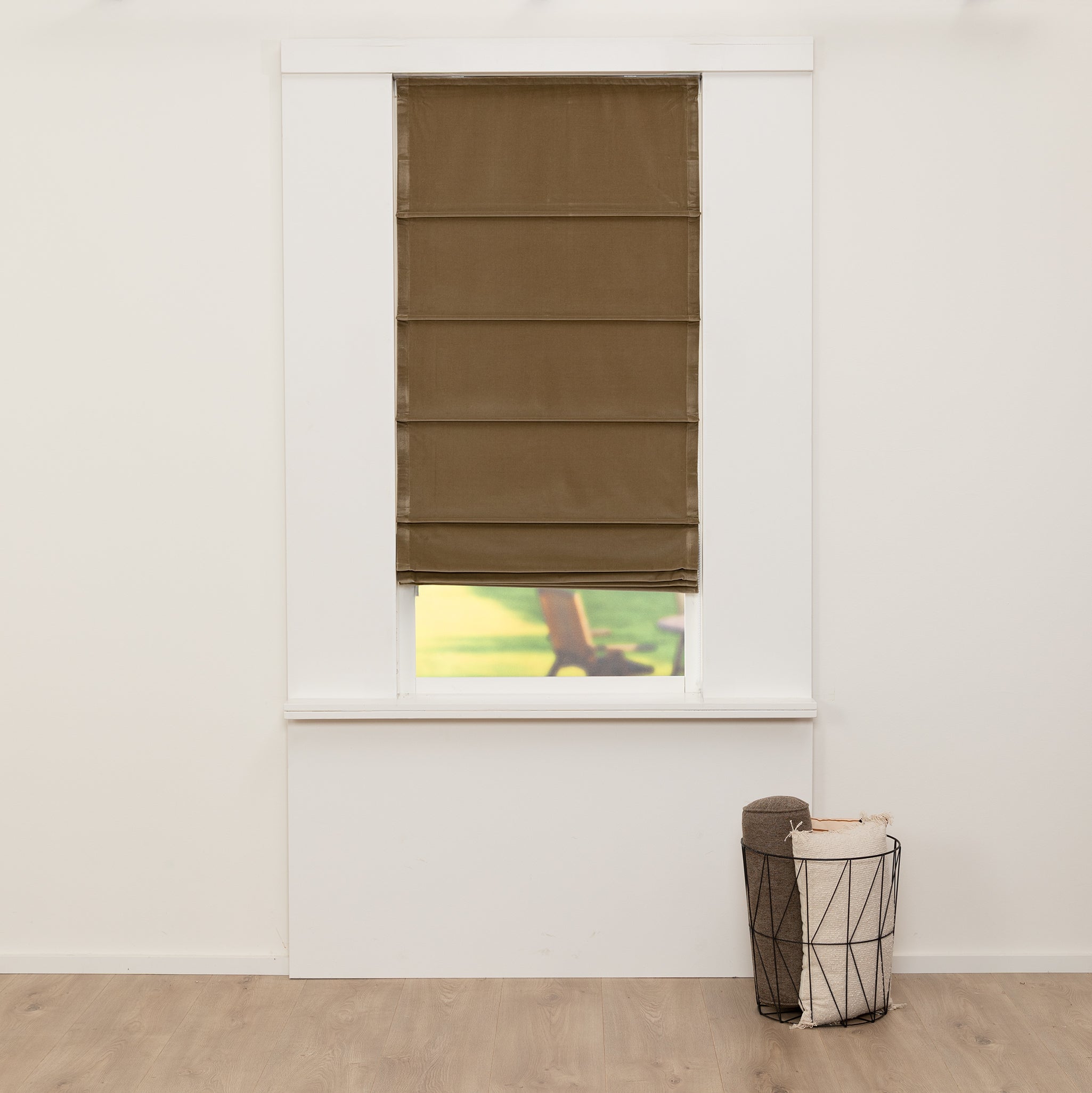 Kleurafwijkingen tussen de zijstroken en het midden van het vouwgordijn zijn mogelijk als gevolg van de vleug van de stof en de machinale afwerking.